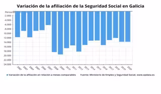 Variación de la afiliación a la Seguridad Social en Galicia, con datos actualizados a enero del 2020. - EPDATA