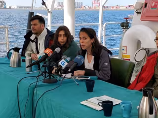 La rueda de prensa ha tenido lugar a bordo del 'Rainbow Warrior' y en ella han participado junto al capitán del navío, Pep Barbal, y la responsable de la campaña, María Prado; el meteorólogo en TVE Martín Barreiro, la portavoz de Fridays For Future Galicia, Silvia Mete; la coordinadora de Teachers For Future, Miriam Leirós; y la asesora de democratización de la energía de Greenpeace, Sara Pizzinato.