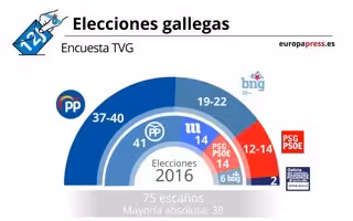 De esta forma, el candidato del PP a la reelección como presidente de la Xunta, Alberto Núñez Feijóo, perdería escaños respecto a los 41 que había obtenido en las autonómicas de septiembre de 2016. La encuesta le atribuye a los 'populares' un porcentaje de voto del 44,7%.