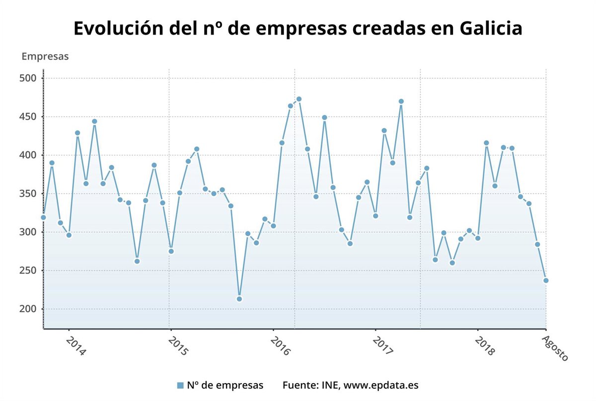 El número de nuevas sociedades mercantiles bajó un 20,7% en agosto en Galicia respecto al mismo mes del año anterior, hasta sumar 237 empresas, al tiempo que las disoluciones se redujeron un 17,3%, hasta totalizar 67, de acuerdo con los datos que publica este martes el Instituto Nacional de Estadística (INE).