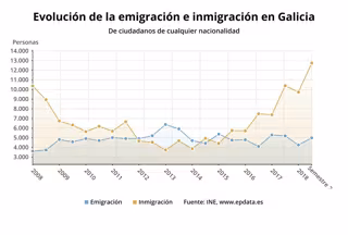 Esta cifra supone casi duplicar los datos de 2017, cuando entraron en el territorio gallego 6.882 personas más de las que salieron. Además, de los que llegaron en 2018 había 2.885 con nacionalidad española, lo que supone un aumento del 47% frente al año anterior --fueron 1.954 en 2017--.