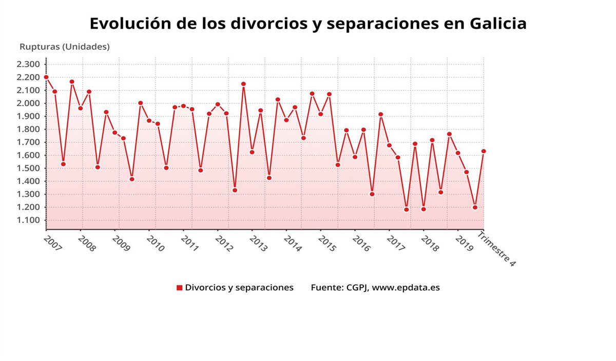 Evolución de los datos de divorcios y separaciones en Galicia. - EUROPA PRESS