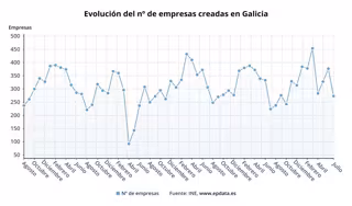 Evolución de la constitución de empresas en Galicia, según datos del INE. - EPDATA
