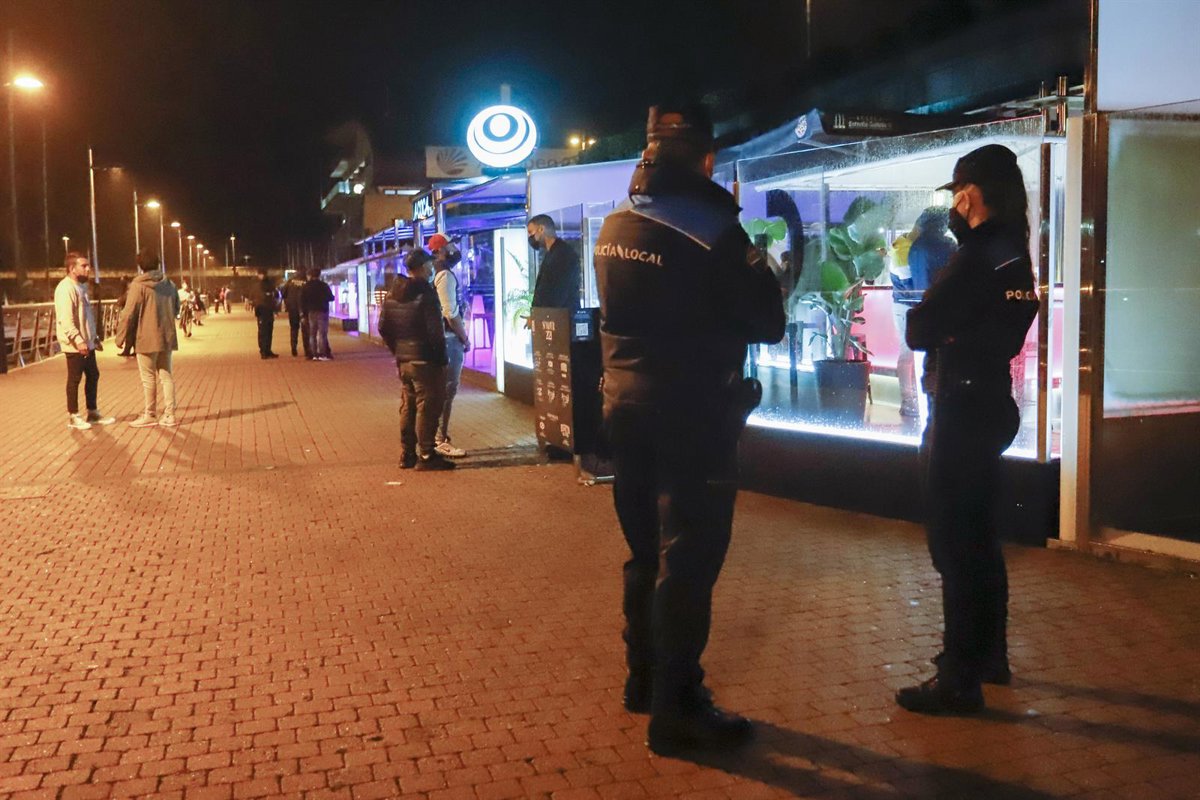 Dos agentes de Policía Local pasean por el Puerto de Sanxenxo para informar en cada uno de los locales de ocio nocturno sobre las nuevas medidas Covid, en Sanxenxo, a 3 de julio de 2021, en Pontevedra, Galicia (España). Las autoridades pueden llegar a m - Marta Vázquez Rodríguez - Europa Press