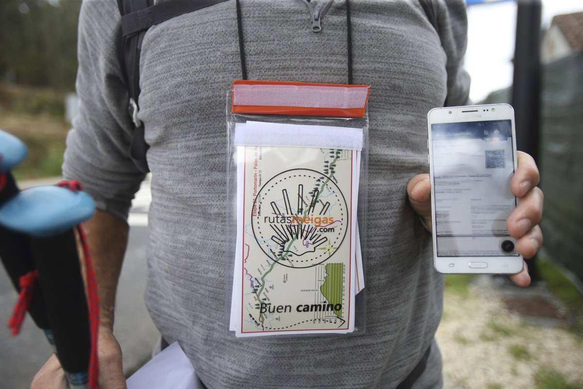 Un peregrino muestra su certificado de vacunación, a 30 de octubre de 2021, en O Pino, A Coruña, Galicia (España) - Salomé Montes - Europa Press
