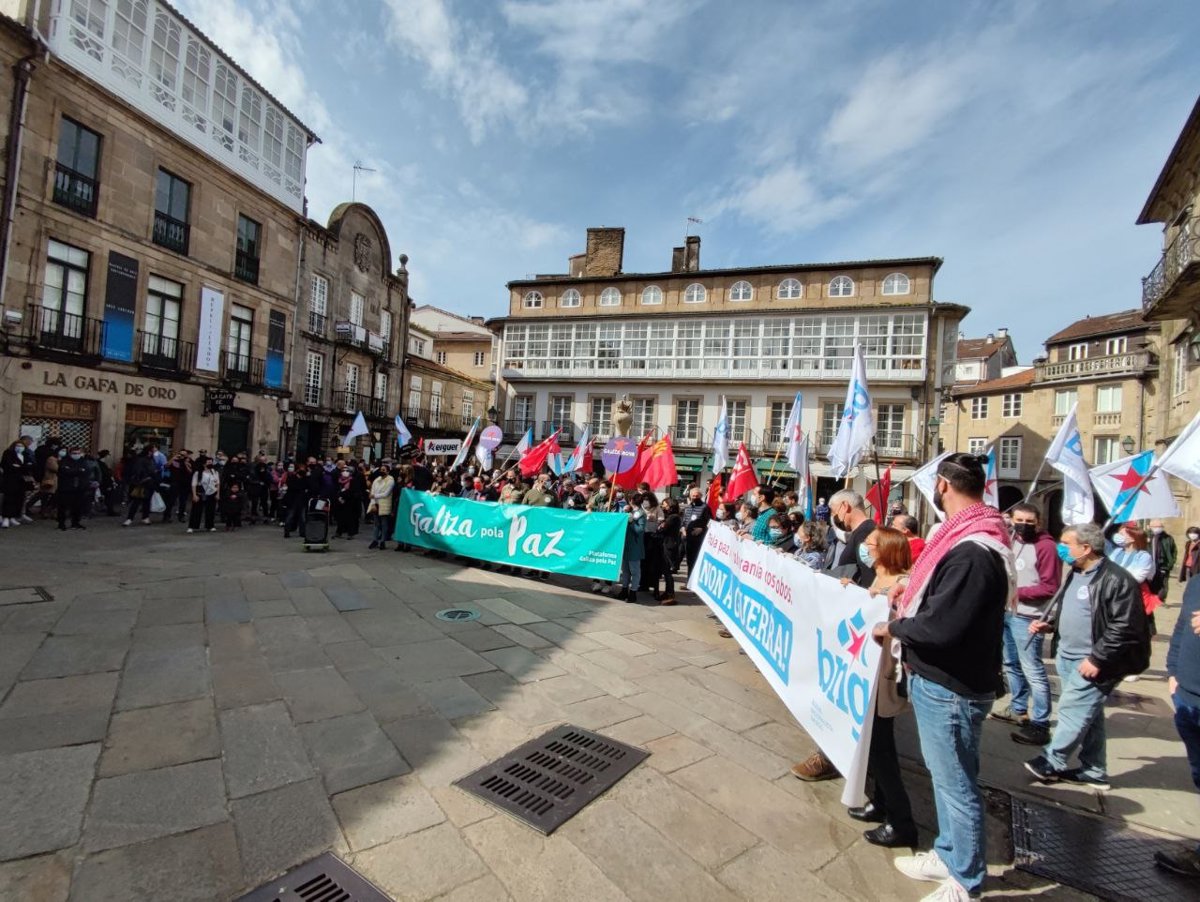La plataforma 'Galiza pola Paz' se ha manifestado este domingo en las principales ciudades gallegas para pedir el fin de la guerra de Ucrania y apoyar medidas diplomáticas para acabar con el conflicto.