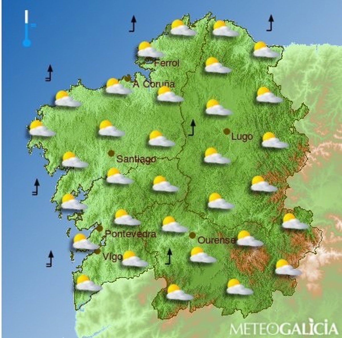 De este modo, según han explicado fuentes de MeteoGalicia a Europa Press, los cielos en general estarán parcialmente nublados en toda la Comunidad con grandes claros durante las primeras horas.