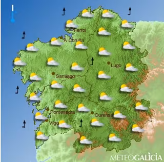 Además, MeteoGalicia ha indicado que las temperaturas serán suaves durante toda la jornada y no experimentarán cambios muy significativos, excepto un ligero ascenso de las mínimas.