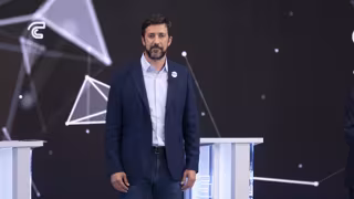 El candidato a la Presidencia de la Xunta de Galicia en Común, Antón Gómez-Reino, en el debate televisivo a siete organizado por la radiotelevisión gallega (CRTVG), el único debate electoral programado en la campaña - CRTV
