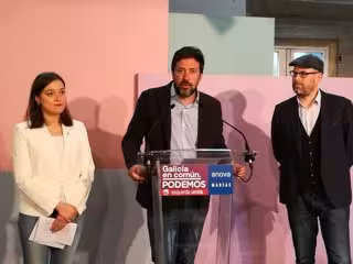 Eva Solla, Antón Gómez-Reino y Martiño Noriega, de la coalición Galicia En Común-Anova Mareas, en una rueda de prensa - EN COMÚN