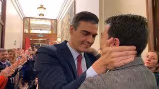 El líder del PSOE, Pedro Sánchez, saluda al secretario general del PSdeG, Gonzalo Caballero, tras la investidura - PSDEG