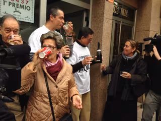 Mientras la celebración continuaba, con brindis incluido, Ramona, la mujer de Ángel, mostraba el décimo a los medios. "Voy a ir a Cuba a ver cómo está Fidel", bromeó la mujer al ser preguntada sobre lo qué hará con el premio.