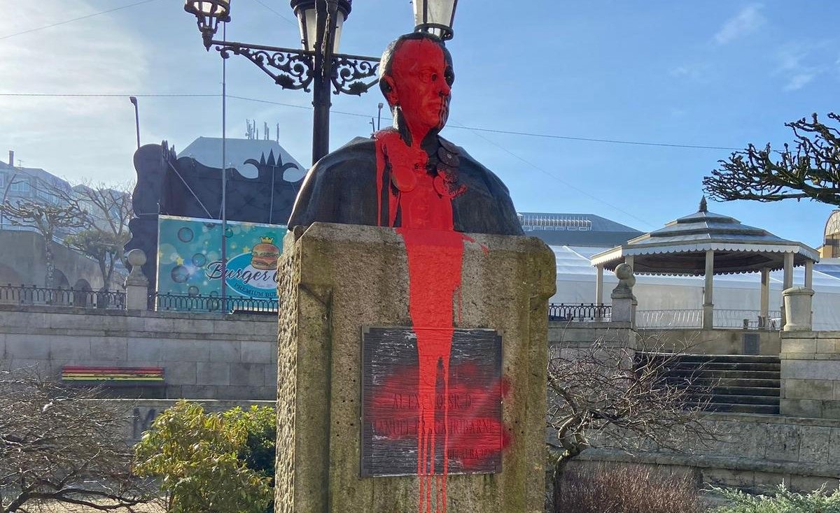Un día después de que trascendiese que el busto del expresidente gallego en su villa natal había sido vandalizado, el grupo ha mostrado en una publicación de 'Instagram' cómo varios miembros se desplazaron en coche desde Euskadi hasta Galicia para cubrir de pintura roja el monumento.
