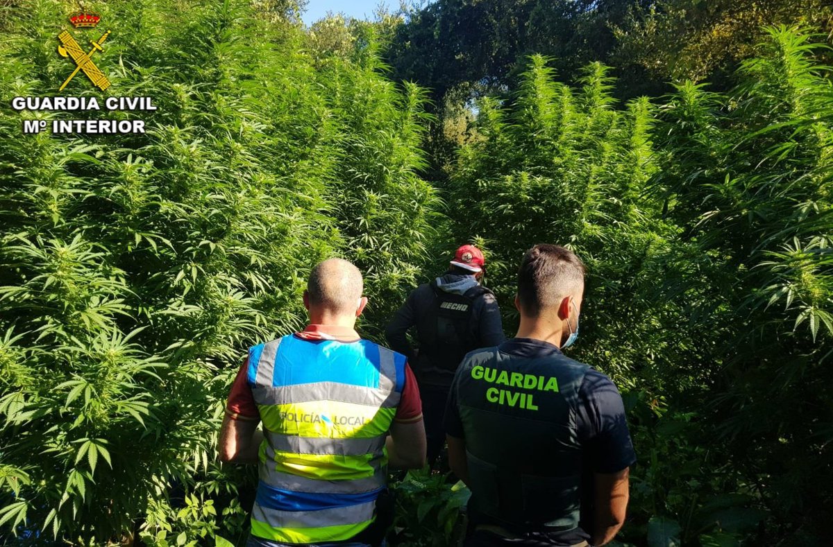 Las plantas de cannabis fueron cortadas para ser destruidas con la ayuda de Protección Civil y empleados municipales. La Guardia Civil destaca la circunstancia "novedosa" de que el perímetro de la plantación estaba protegido con las cámaras y que se había instalado un sistema de riego automático que extraía el agua de un río próximo.