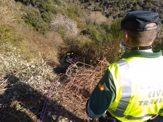 Los medios consiguen rescatar del interior del turismo a la conductora a las 13,06 horas, mientras que el vehículo permaneció hasta la tarde al fondo del barranco.