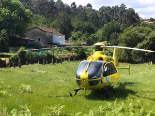 Los servicios sanitarios derivaron al punto el helicóptero medicalizado con base en Santiago, que tomó tierra en el mismo lugar de los hechos y que, finalmente, trasladó a la herida al Hospital Álvaro Cunqueiro de Vigo.