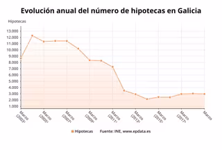 El número de hipotecas constituidas sobre viviendas inscritas en los registros de la propiedad se situó en 936 en marzo en Galicia, cifra un 8,6% superior a la del mismo mes de 2018, frente al 15,8% de incremento de la media estatal, según los datos que publica este miércoles el Instituto Nacional de Estadística (INE).