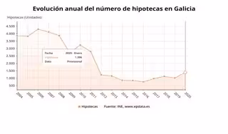 Las hipotecas sobre viviendas se dispararon un 36% en enero en Galicia en comparación con el mismo mes del año anterior, hasta un total de 1.396, según los datos que publica este jueves el Instituto Nacional de Estadística (INE).