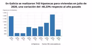 El número de hipotecas constituidas sobre viviendas inscritas en los registros de la propiedad se situó en 743 el pasado mes de julio en Galicia, cifra que supone un descenso del 40,2% respecto al mismo mes de 2019, según los datos que publica este lunes el Instituto Nacional de Estadística (INE).