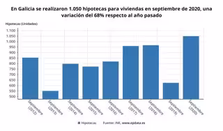 El número de hipotecas constituidas sobre viviendas inscritas en los registros de la propiedad se situó en 1.050 en Galicia en septiembre, un 68% más que en el mismo mes del año anterior, incremento que es casi cuatro veces superior al de la media (+18,4%), según los datos que publica este lunes el Instituto Nacional de Estadística (INE).