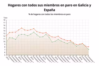 En comparación con el mismo trimestre del pasado ejercicio, los hogares gallegos con todos sus miembros en paro son 8.700 menos, lo que representa una bajada del 14,1%.