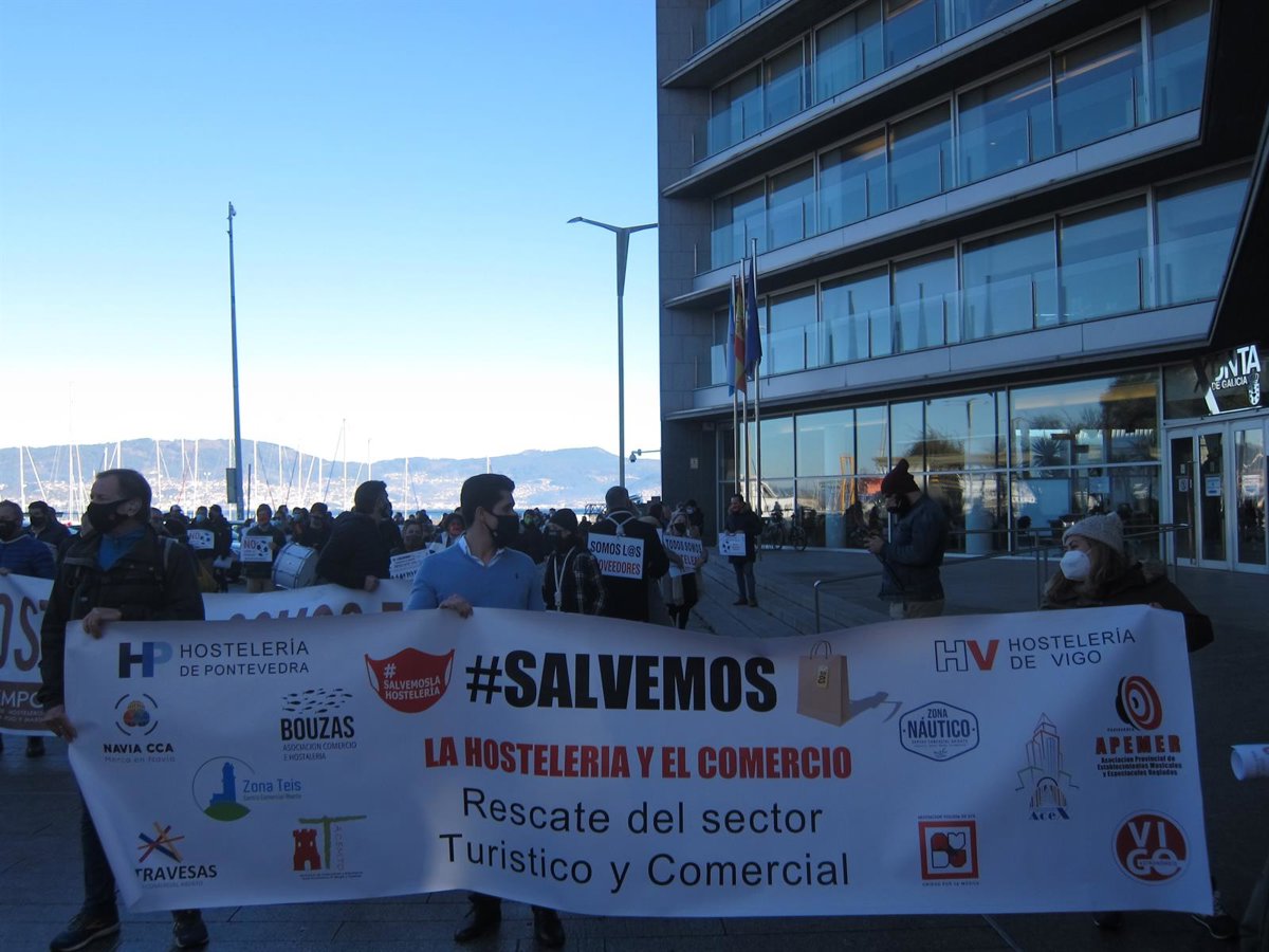 Hosteleros y comerciantes se manifiestan en Vigo ante la Delegación Territorial de la Xunta - EUROPA PRESS