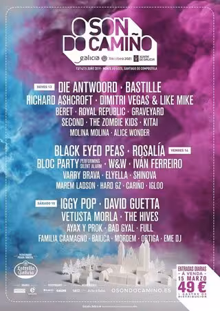 Iggy Pop y David Guetta estarán en la jornada del sábado del festival O Son do Camiño. Die Antwoord encabezará el cartel del jueves y Black Eyed Peas, Rosalía y Bloc Party, el del viernes.