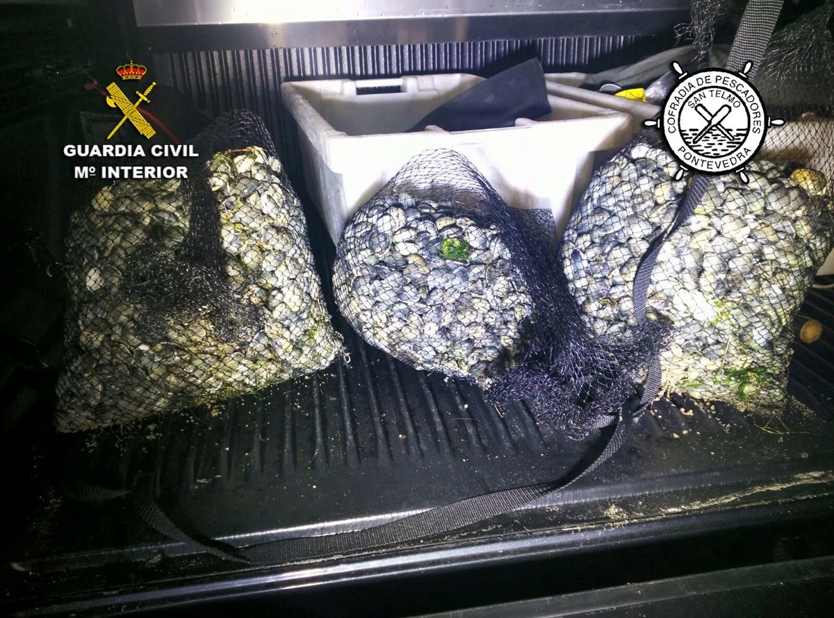 La Guardia Civil y los vigilantes de Guardapescas de la cofradía de pescadores San Telmo se han incautado de 37 kilos de almeja extraída por mariscadores furtivos en la ría de Pontevedra.