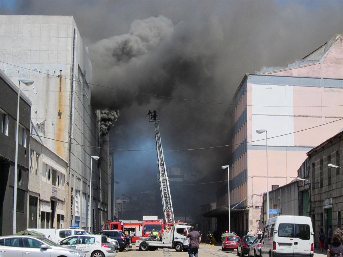 A causa del fuego en la nave, que no alberga actividad productiva y ya sufrió un importante incendio en 2011, se ha desplegado una importante cantidad de efectivos, entre los que destacan los Bomberos de Vigo --con más de siete vehículos, equipos de respiración y una escalera para sofocar el fuego en altura-- la Policía Local, Guardia Civil y también Policía Portuaria, además de varias ambulancias. De igual forma, desde el agua acudió el remolcador 'María Pita' de Salvamento, provisto de un cañón para lanzar agua.