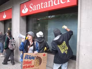 En lo que a actividades se refiere, la capital gallega ha sido este lunes escenario de un acto de protesta contra los bancos y las cajas de ahorro, en un simbólico "proceso de limpieza y desinfección" de las entidades crediticias.