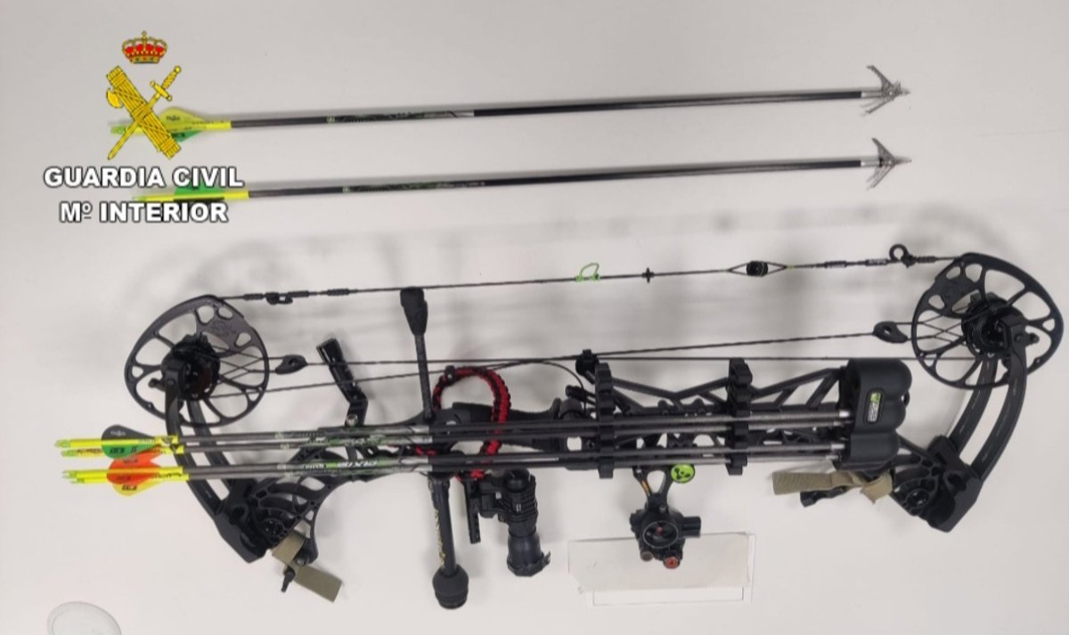La Guardia Civil denunció el pasado lunes, día 23 de octubre, a un vecino de la localidad pontevedresa de Ponteareas tras detectarlo cazando de forma furtiva un jabalí con un arco de flechas profesional.