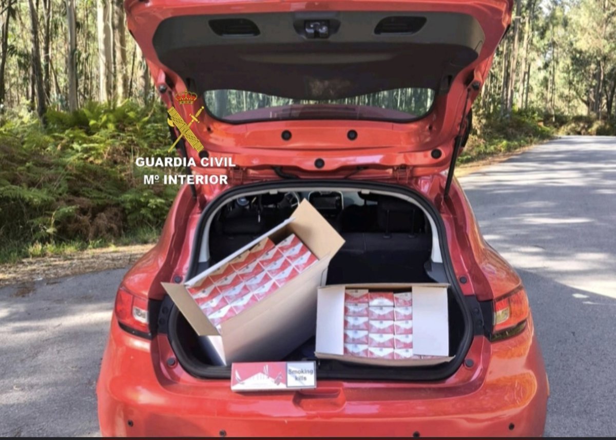 Intervenidas casi un millar de cajetillas de tabaco sin precinto ni estampilla, a un conductor de 21 años interceptado por la Guardia Civil en Sanxenxo (Pontevedra). - GUARDIA CIVIL