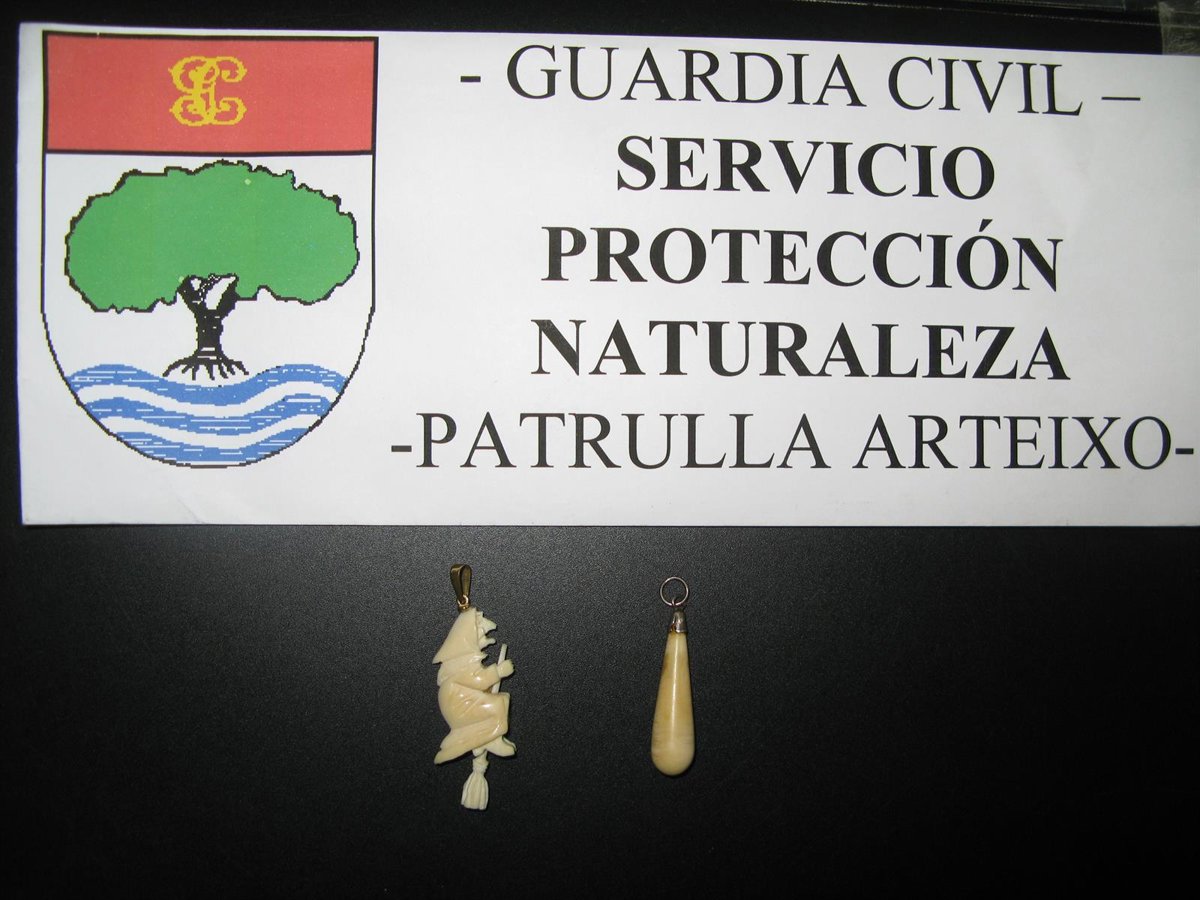 Efectivos del Seprona de la localidad coruñesa de Arteixo han procedido a la aprehensión de dos colgantes tallados en marfil de elefante que se ofertaban en Internet.