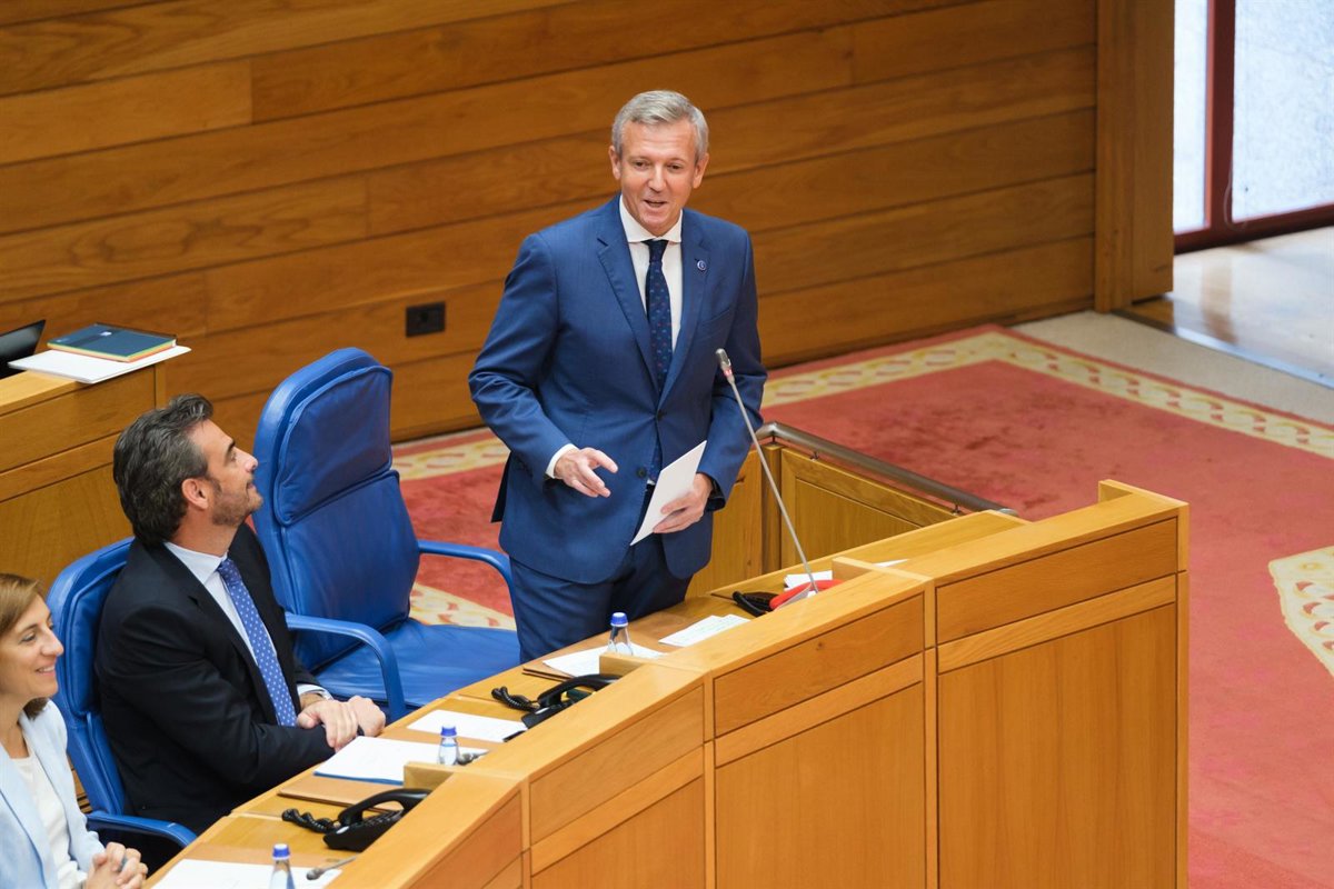 El debate de investidura de Alberto Núñez Feijóo se ha colado con fuerza en el pleno del Pazo do Hórreo, donde el presidente autonómico, Alfonso Rueda, ha defendido al candidato y su "compromiso" con Galicia, frente a las críticas verbalizadas por Ana Pontón (BNG) y Luís Álvarez (PSOE), quienes han afeado el "desprecio" que, bajo su punto de vista, mostró el popular hacia la Comunidad.