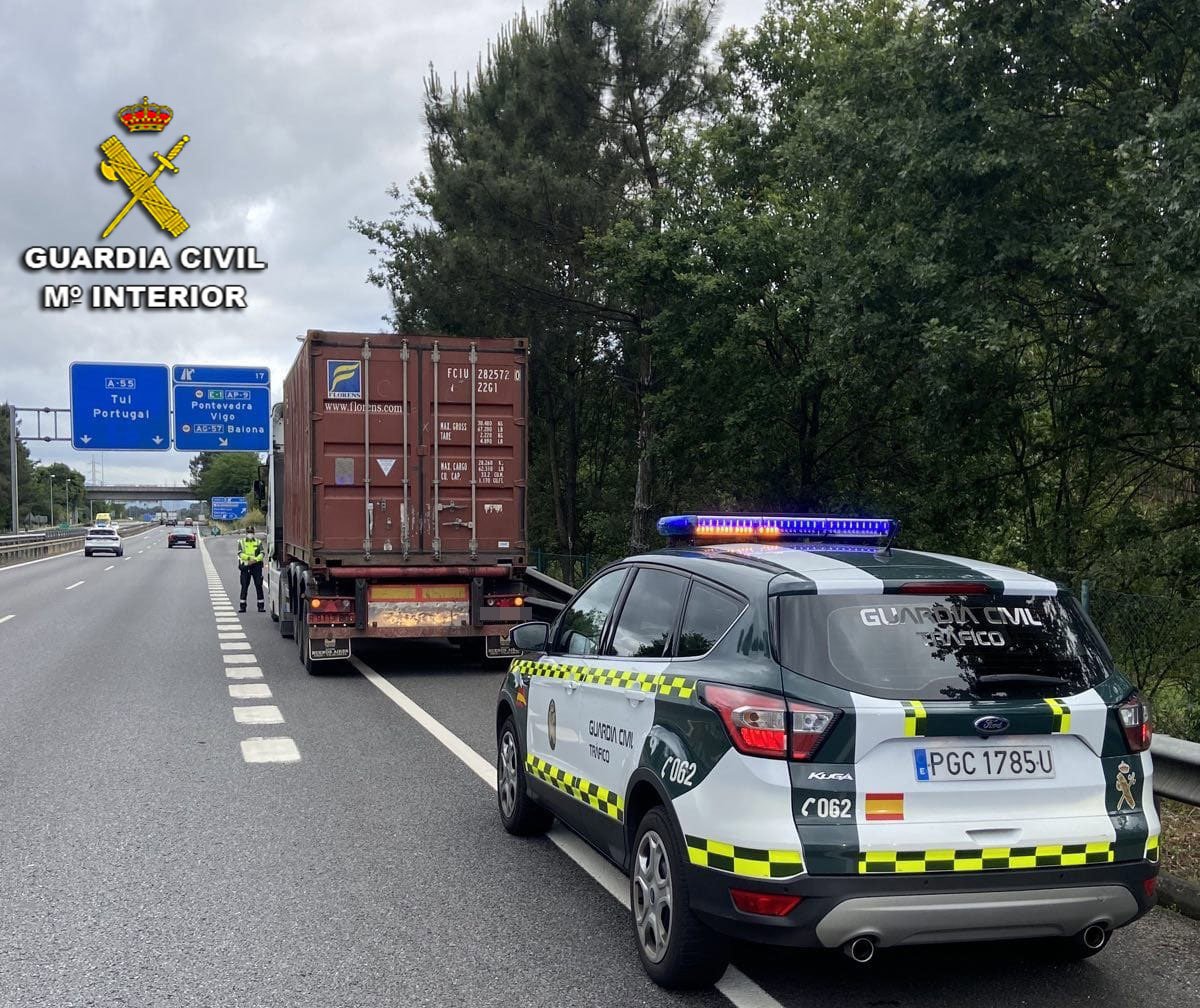 Al lugar se desplazó una patrulla del Destacamento de Tráfico de O Porriño y comprobó que el accidente consistió en "una colisión por raspado del camión, a un turismo que estaba estacionado en el arcén con motivo del pinchazo de una rueda", debido a lo que resultó herido su conductor "que se encontraba cambiando la misma", añaden las mismas fuentes, al que se evacuó en ambulancia.
