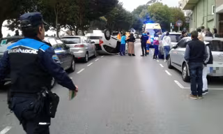 Un equipo de Atestados de la Policía Local de Lugo se desplazó hasta Ronda das Fontiñas donde se había producido un accidente y al llegar se encontraron un vehículo volcado que, con anterioridad, ya había impactado contra otros cinco que se encontraban estacionados.