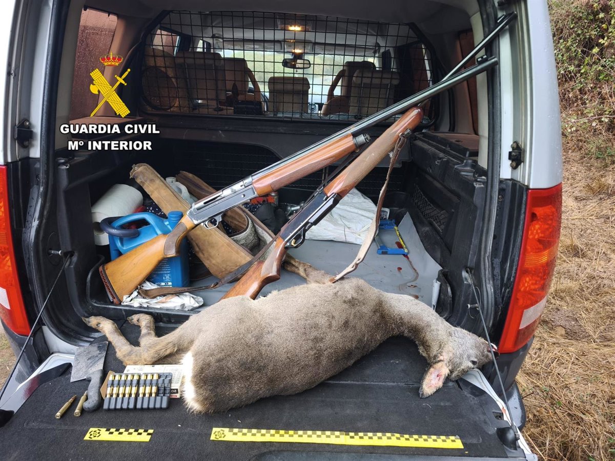 El Servicio de Protección de la Naturaleza (Seprona) de Lobios, en el marco de la operación 'Lusket Doce' contra el furtivismo, ha tomado declaración a tres personas en calidad de investigadas como presuntas autoras de un delito contra la fauna, tras localizar en el interior de un vehículo el cadáver de un ejemplar macho de corzo (Capreolus capreolus), así como varias armas con munición del mismo calibre.