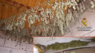 Además, en una nave próxima a la vivienda, habilitada como secadero, los agentes intervinieron ramas de un indeterminado número de plantas colgadas del techo, con sus respectivos cogollos, además de varios recipientes con restos de hojas secas.