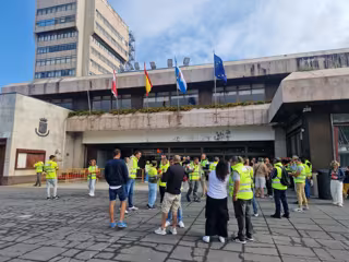 A gritos de 'No somos esclavos, somos trabajadores', 'Si sube el IPC, los salarios también' o 'UTE culpable, Ayuntamiento responsable', los empleados se han concentrado a partir de las 11.00 horas delante de la sede del gobierno local para pedir que se ponga fin a esta situación.