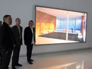 Abre la exposición la obra 'Morning cleaning' de Jeff Wall en la que se puede observar a un limpiador con un cubo y una fregona en el pabellón alemán que el arquitecto Mies van der Rohe concibió para la Exposición Internacional de Barcelona en 1929 y que posteriormente fue reconstruido.