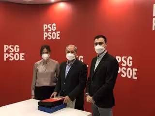 Tomé ha acudido este domingo a la sede gallega del partido, en Santiago de Compostela, acompañado de dos miembros de su gobierno en la Diputación, Pilar García Porto y Pablo Rivera.