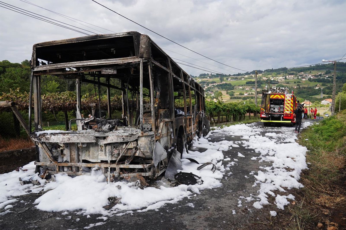 Archivo - El autobús calcinado durante el dispositivo de extinción del incendio. Foto de archivo. - Álvaro Ballesteros - Europa Press - Archivo