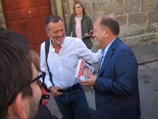 Con todo, el punto más simpático de la jornada se produjo justo en el momento del arranque del paseo, cuando se cruzó con un grupo de miembros del PP compostelano encabezados por Agustín Hernández y Paula Prado.