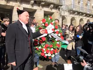 Leo Bassi, que ha recorrido el Obradoiro con los acordes del Himno del Antiguo Reino de Galicia, ha depositado una corona de flores en honor a Prisciliano ante la Catedral, el "lugar donde están sus restos", ha sentenciado. En la corona se destacaba además a Prisciliano como "el primer mártir del oscurantismo católico".