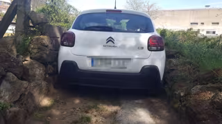 Según han informado, a las 16,00 horas del sábado recibieron una llamada de una persona que decía estar atrapada en su vehículo. Se traslada una patrulla de tráfico y observan en un camino frente a una nave de Leroy Merlin como un coche estaba encajonado entre dos muros, sin posibilidad de avance o retroceso.