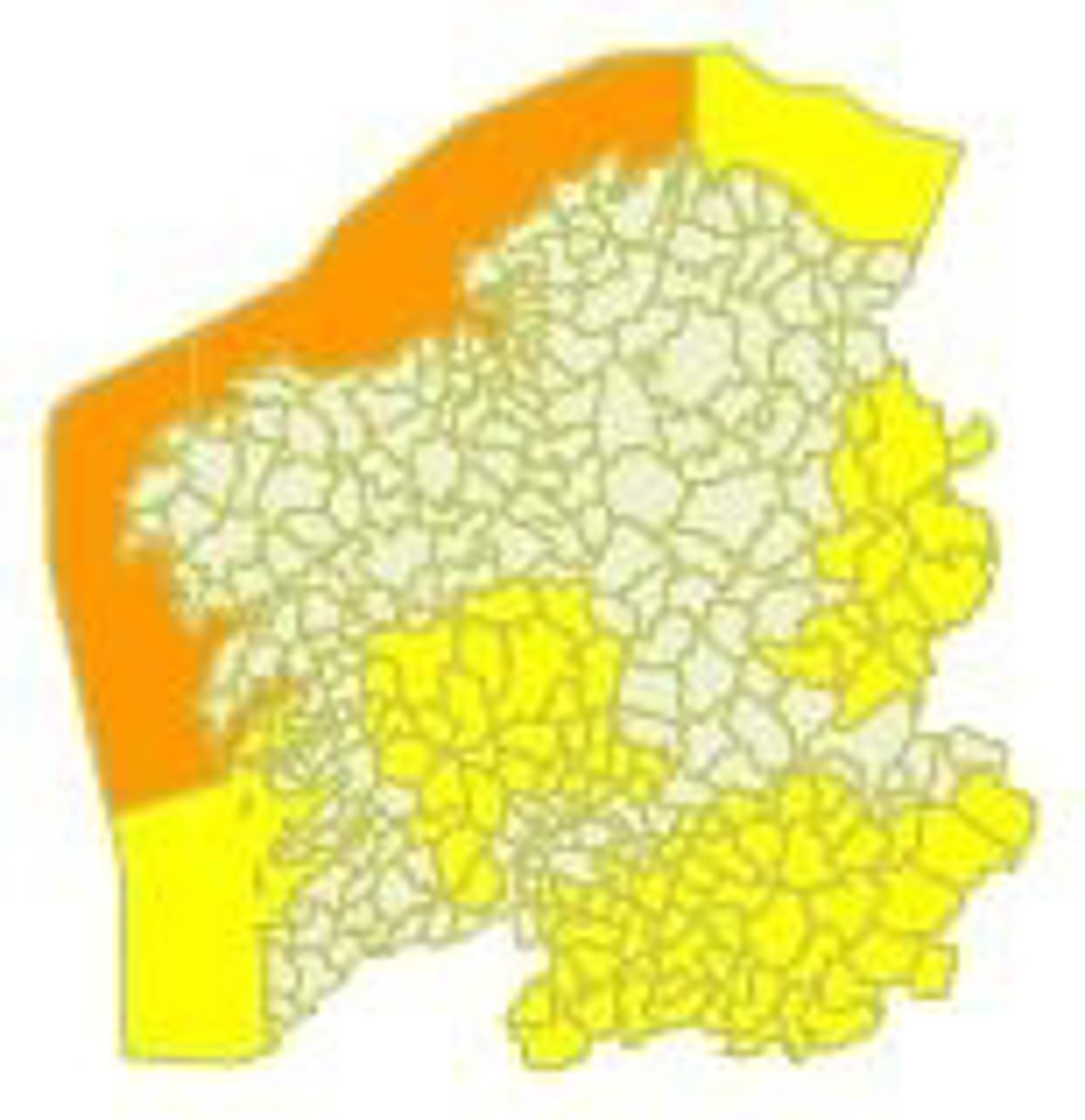 En cuanto al litoral, el aviso será amarillo entre las 12,00 y las 18,00 horas en la costa de A Coruña por olas del noroeste de 4 a 5 metros, tras lo que pasará a naranja por olas de hasta seis metros.