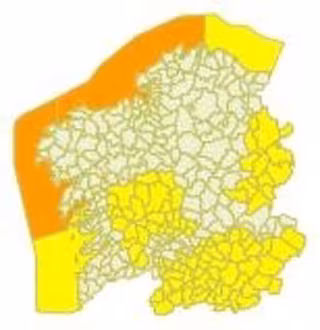 En cuanto al litoral, el aviso será amarillo entre las 12,00 y las 18,00 horas en la costa de A Coruña por olas del noroeste de 4 a 5 metros, tras lo que pasará a naranja por olas de hasta seis metros.