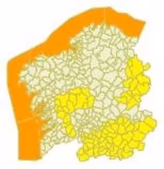 También el aviso será amarillo en el Sur de la provincia de Ourense e interior de la de Pontevedra por acumulaciones de nieve de más de dos centímetros en 24 horas.