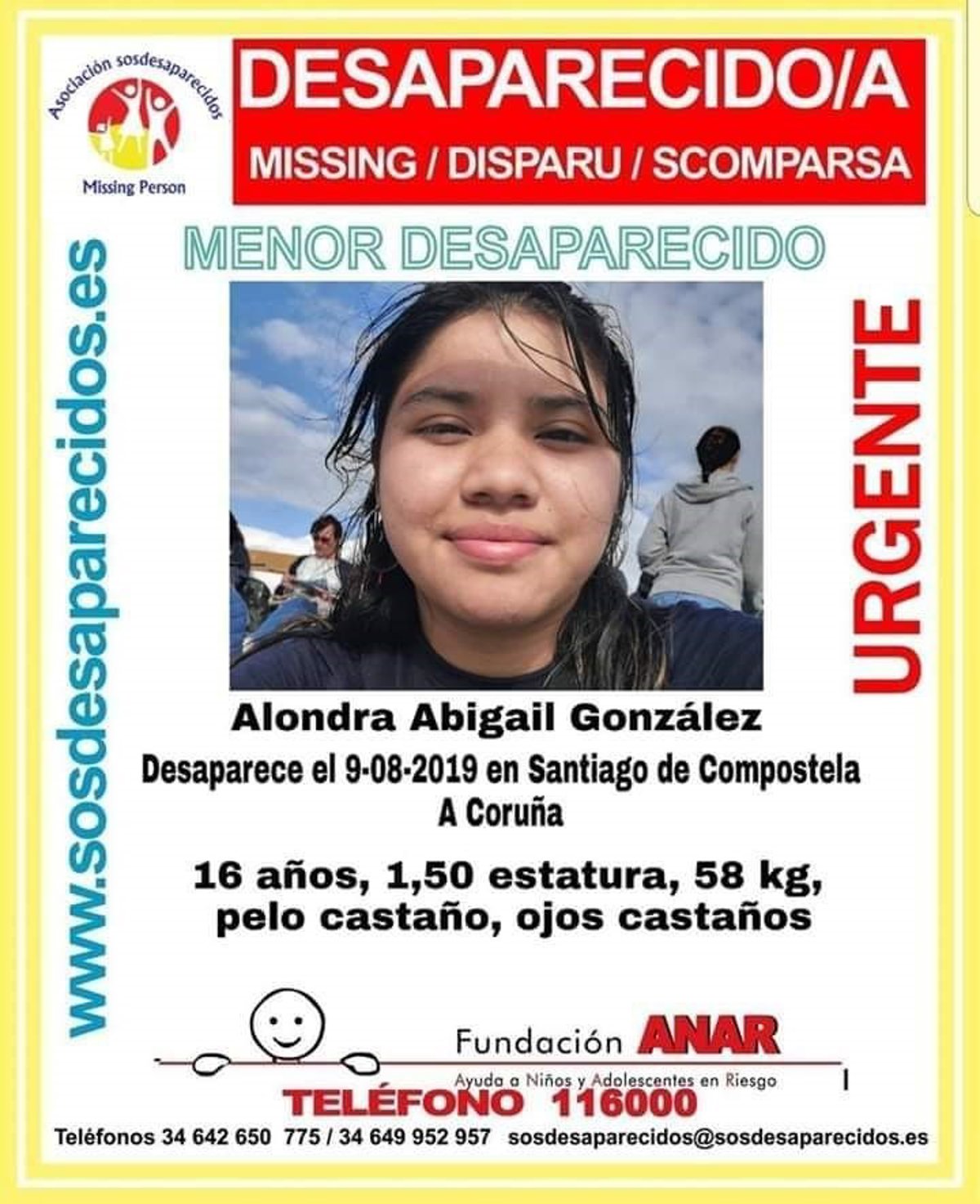 A menor de 16 anos, Alondra A.G., que permanecía desaparecida desde o pasado venres, foi localizada en Ourense en bo estado, segundo informa a organización SOS Desaparecidos en redes sociais.