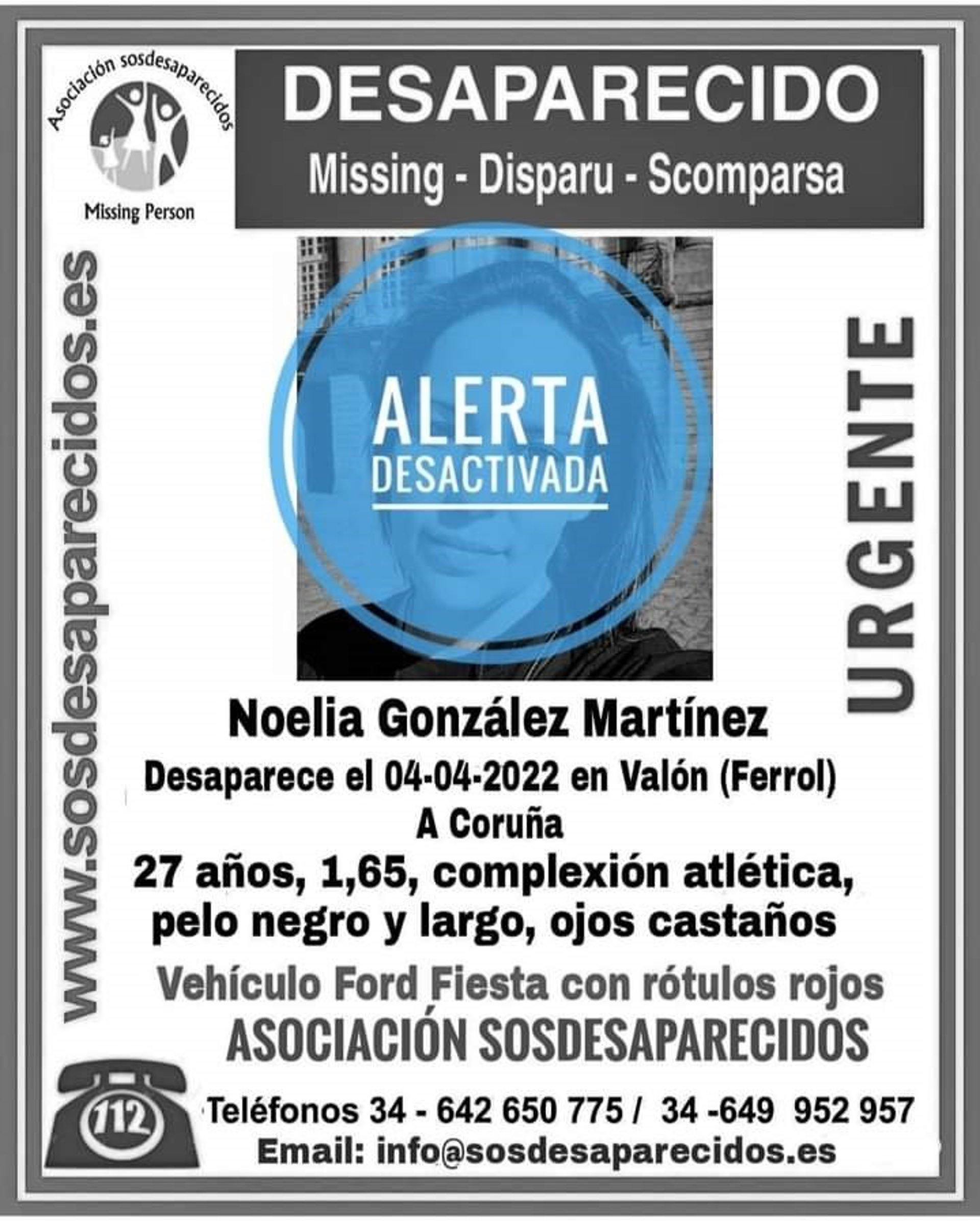 Desde la Asociación Sosdesaparecidos, que fue quien alertó de la desaparición, se ha traslado que la búsqueda ha quedado desactivada.
